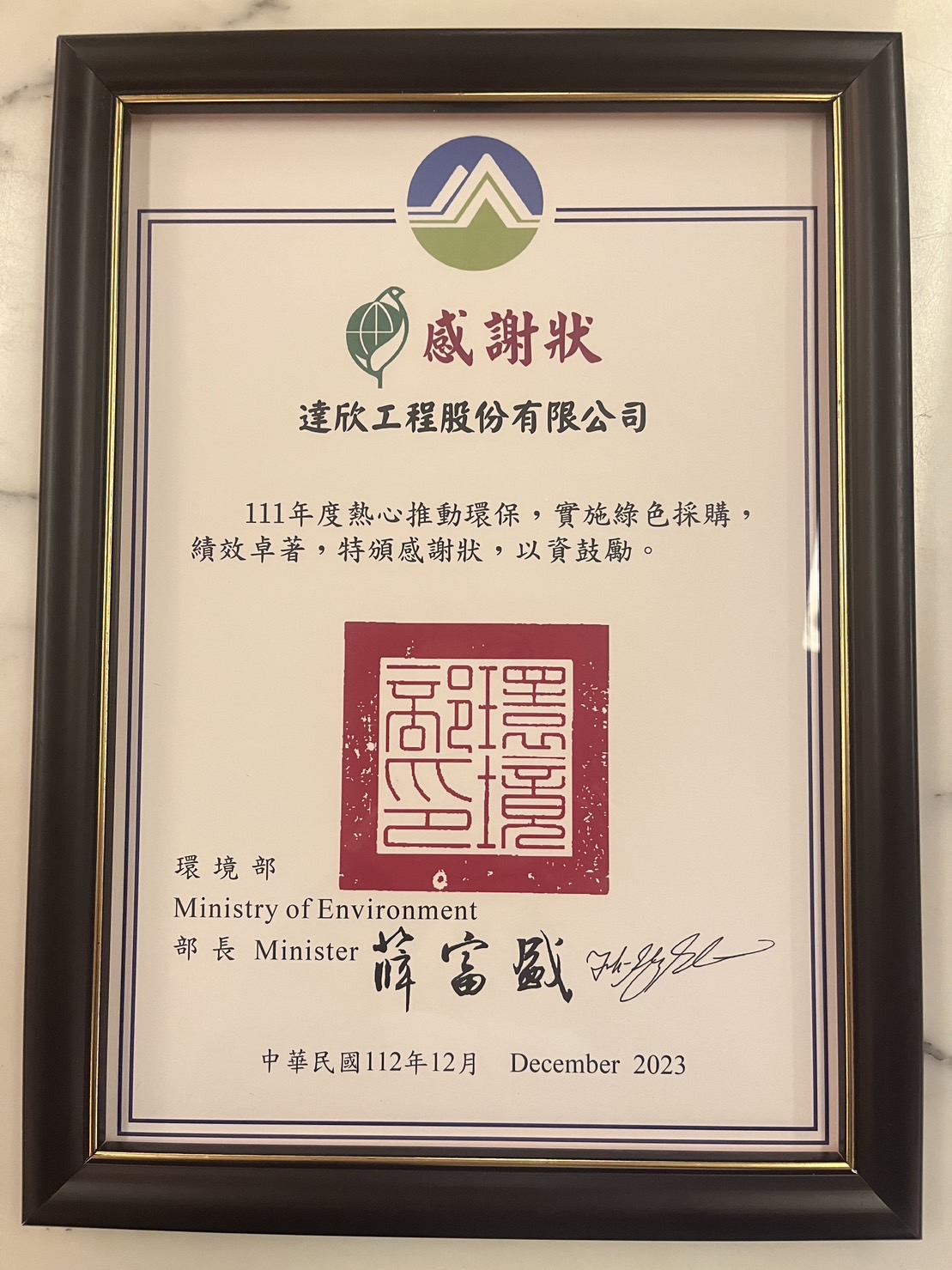 111年度熱心推動環保,實施綠色採購,績效卓著