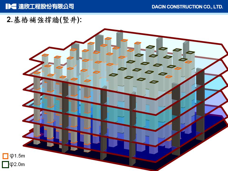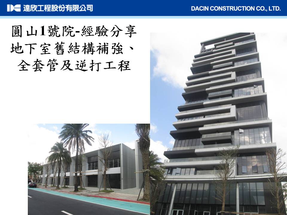本建案为旧建物重建工程(地下四层、深度19.2m),位于台北市人潮众多的观光夜市与学校旁,地层属软弱地质敏感区,因新建物之地下开挖深度略小于既有建物的地下室深度,设计单位规划保留既有的连续壁,并同逆打方式进行新设地下结构施工,其施工挑战除了如何安全地在旧地下室上施作全套管基桩及吊放逆打钢柱外,逐层拆除旧地下室结构的同时施作新建物的地下室也是施工技术的一大考验,慎密周详的施工规划与优良的现场施工管理是本案成功的主要因素。