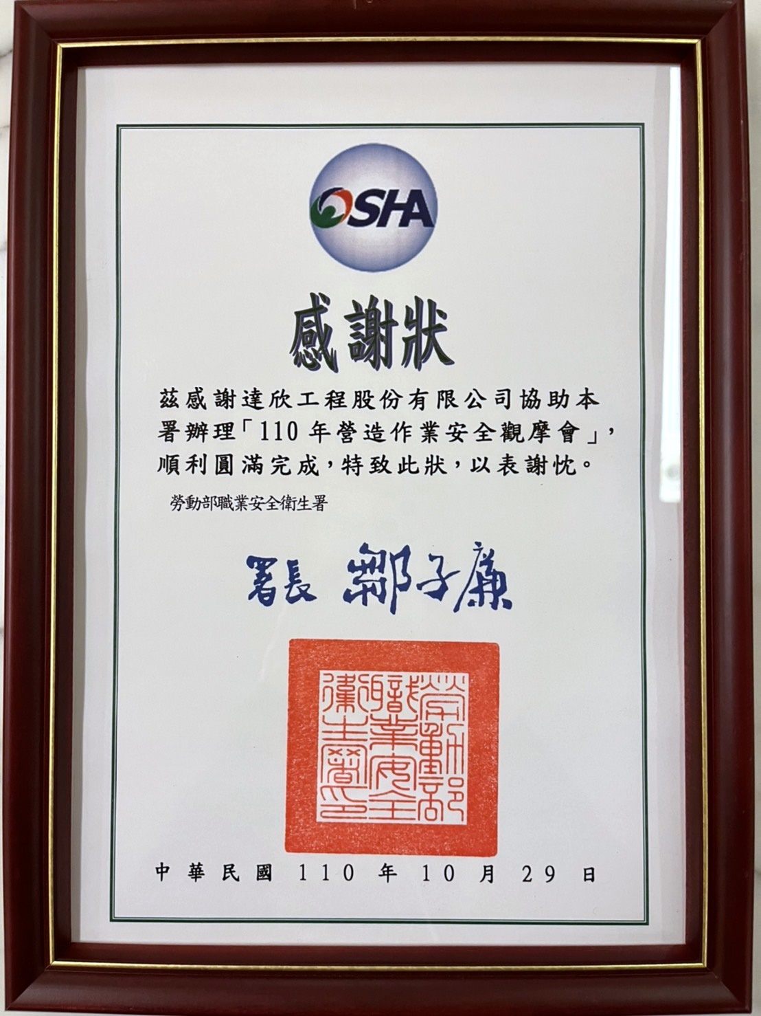 MRT CQ870 construction site won the 10th New Taipei City Industrial Safety Award in 2021.