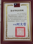 2010.05.05 Honored by Taipei City Government.