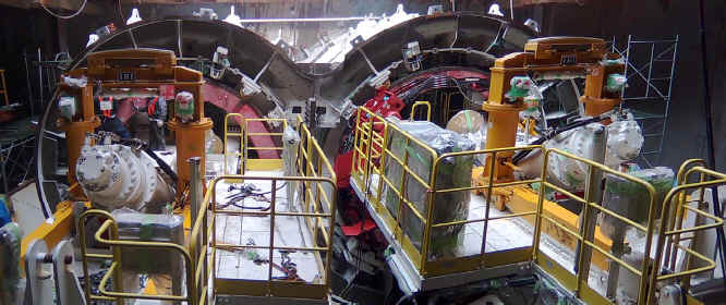 One of the features of this project is that the shield tunnel passes beneath the cut-and-cover tunnels of the Taiwan High Speed Rail and Taiwan Railway (uner the Civic Blvd). Therefore, the shield machine must drill through the lower part of the existing retaining structures of the cut-and-cover tunnels. The challenge is that no impact to the operation or safety of the Taiwan High Speed Rail and Taiwan Railway is allowed during tunneling. The shield machine’s unique design includes eaves for the outgoing part, as well as directly performing ground treatment in the chamber for the soils ahead. The challenge is that no impact on the operation or safety of the Taiwan High Speed Rail and Taiwan Railway is allowed during tunneling.