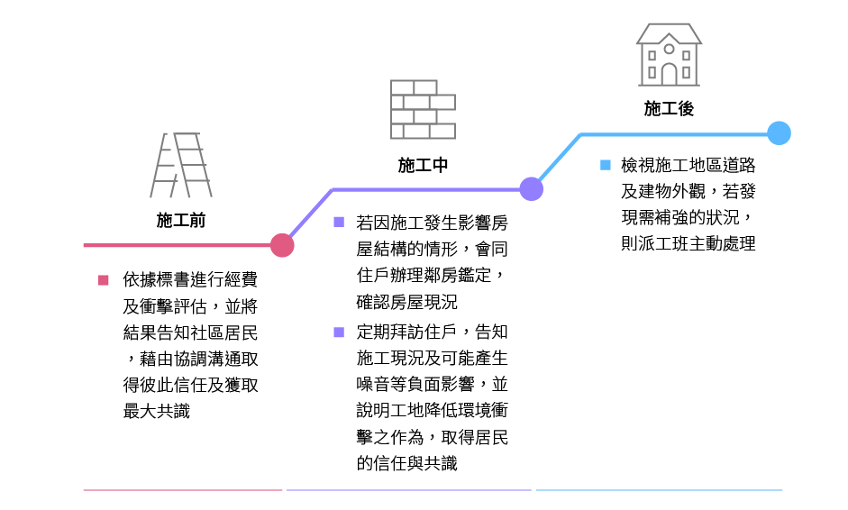 達欣希望能與營運據點所在地之鄰里居民有良好的互動,維持共榮互助的關係,包括工地定期清理周圍鄰房社區水溝,實施消毒作業。